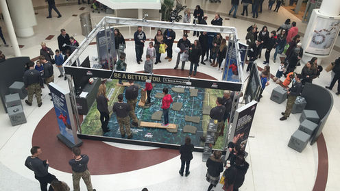 An experiential event that made people think differently about the Army as an employer. A fully-branded interactive event stand was taken to 12 UK shopping centres. The three key activities were a river crossing challenge, a Batak wall and a 360 VR experience of soldier activities.